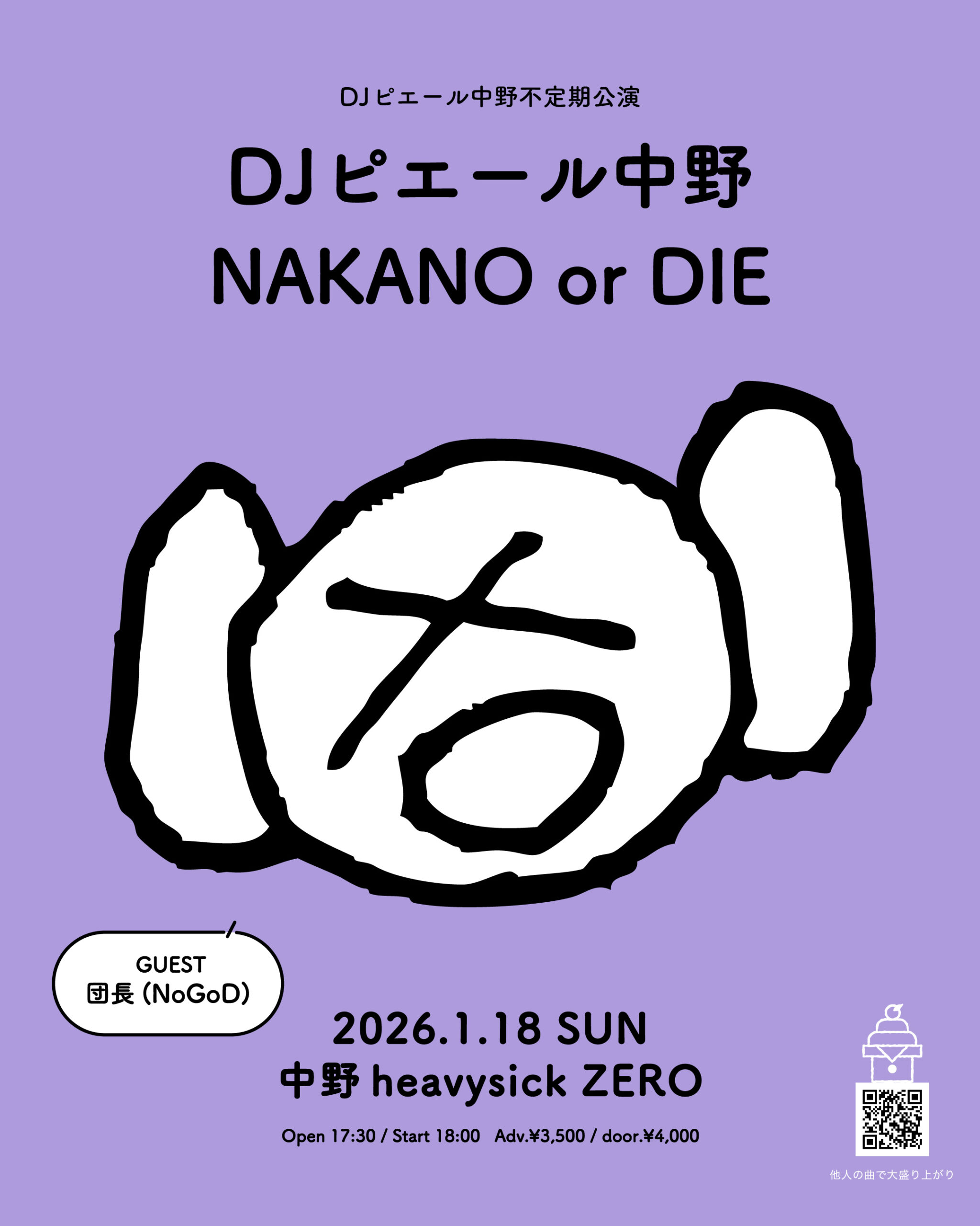 2026/1/18(日)中野 heavysick ZEROにて行われる「NAKANO or DIE」に団長(NoGoD)の出演が決定しました。