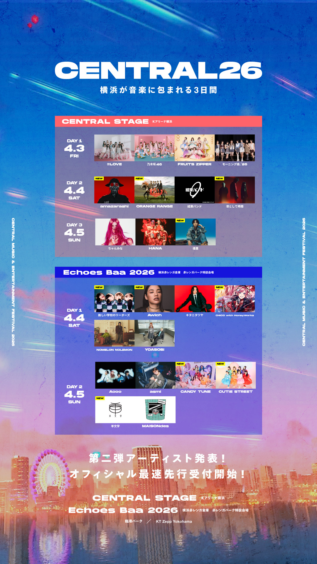 4/4(土) CENTRAL STAGE@Kアリーナ横浜に出演いたします。 本日より各種チケットのオフィシャル先行受付が開始となります。